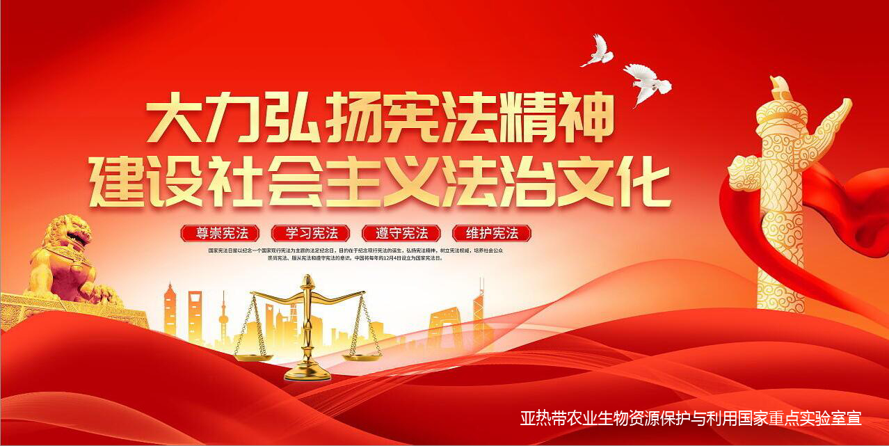 12月1日至7日为宪法宣传周,活动主题为“大力弘扬宪法精神,建设社会主义法治文化”。请实验室全体师生认真学习相关资料,强化宪法意识,弘扬宪法精神。