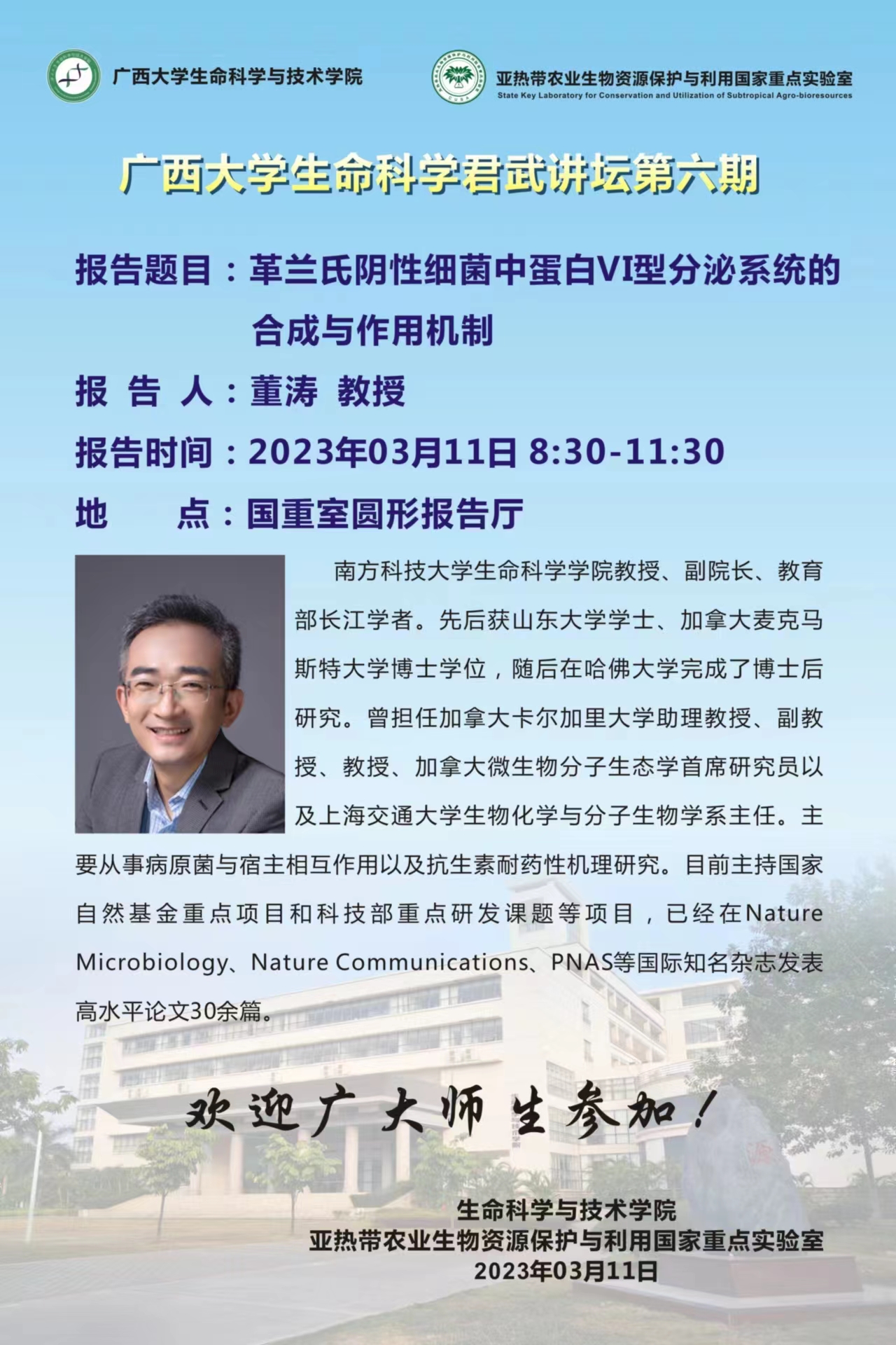 生命科学君武讲坛(第五期):革兰氏阴性细菌中蛋白VI型分泌系统的合成与作用机制