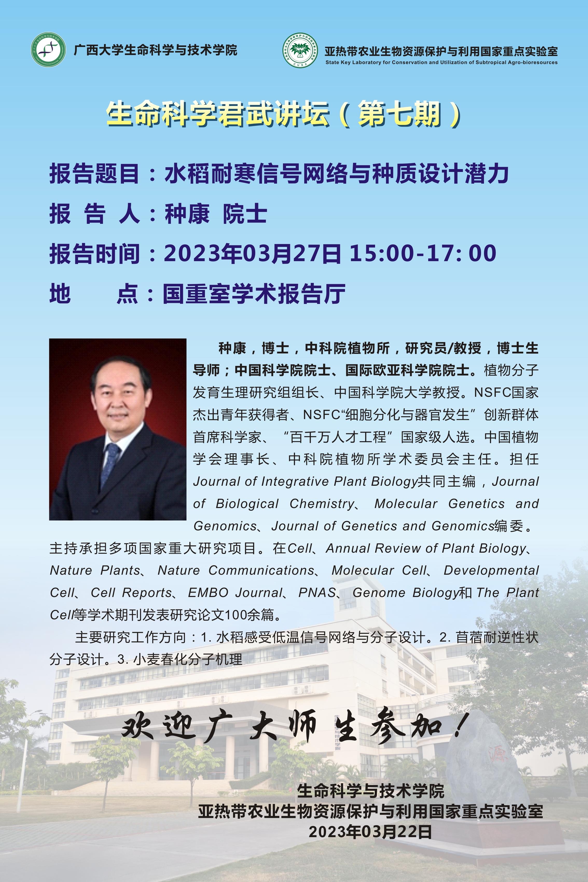 生命科学君武讲坛(第七期):水稻耐寒信号网络与种质设计潜力