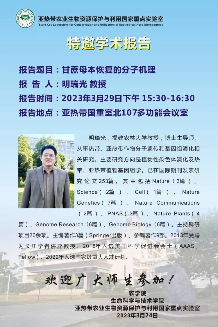 特邀学术报告:甘蔗母本恢复的分子机理
