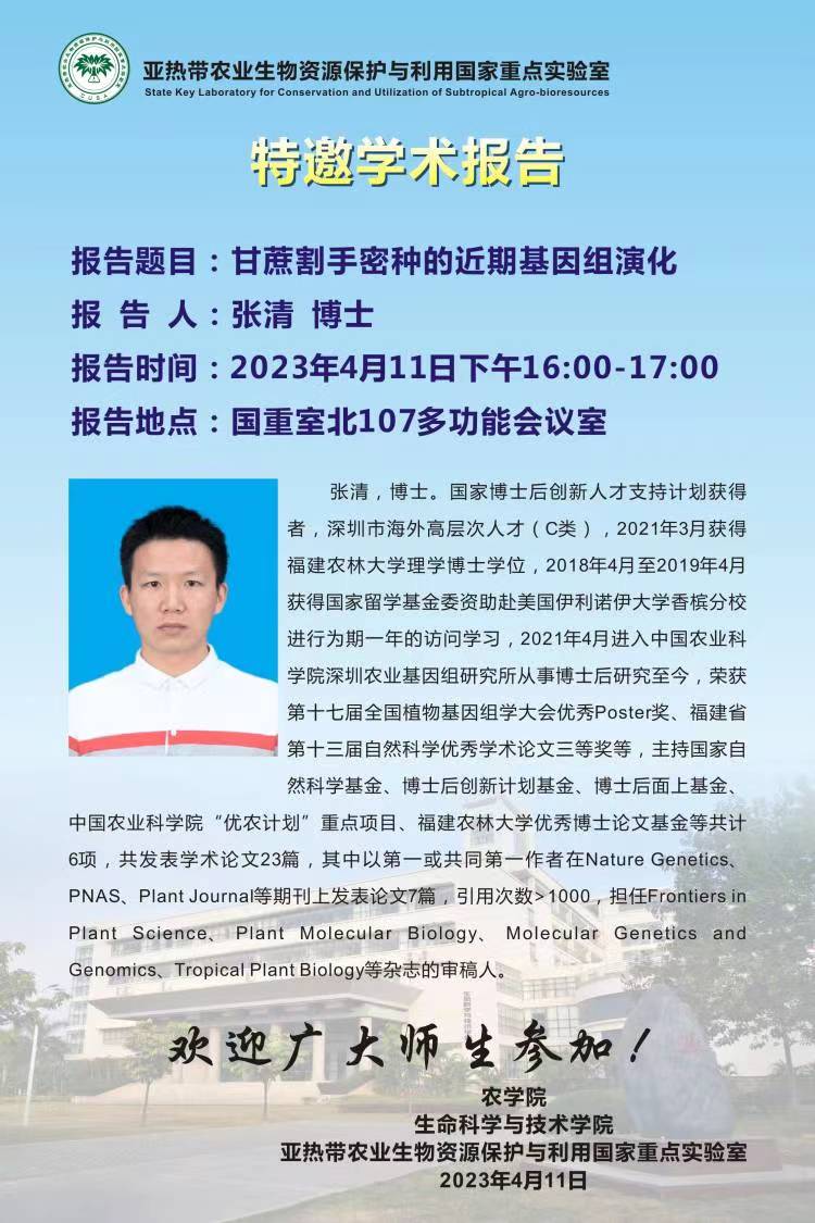 特邀学术报告:甘蔗割手密种的近期基因组演化