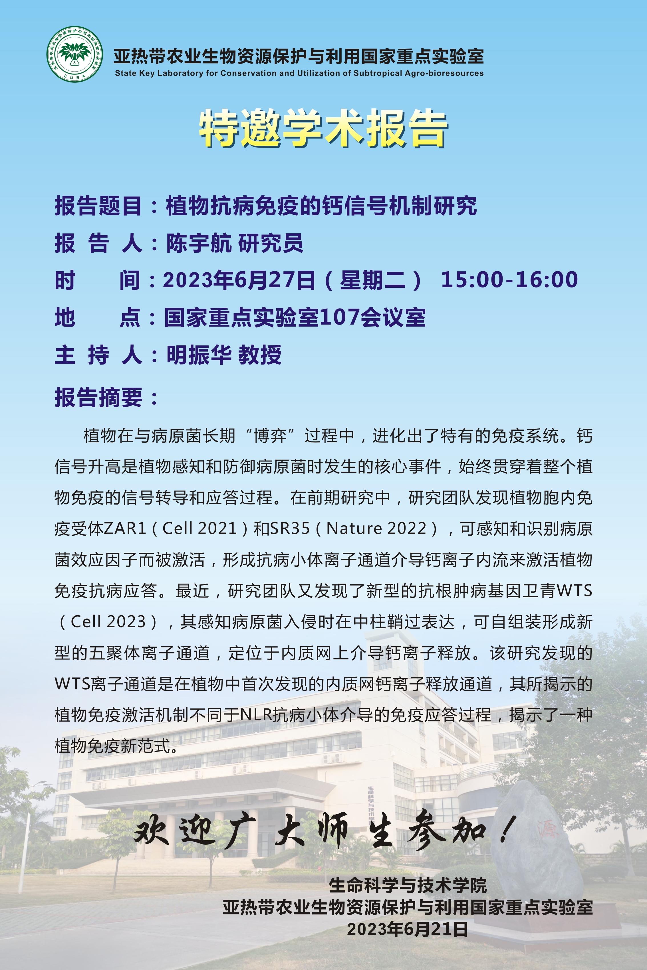 特邀学术报告:植物抗病免疫的钙信号机制研究