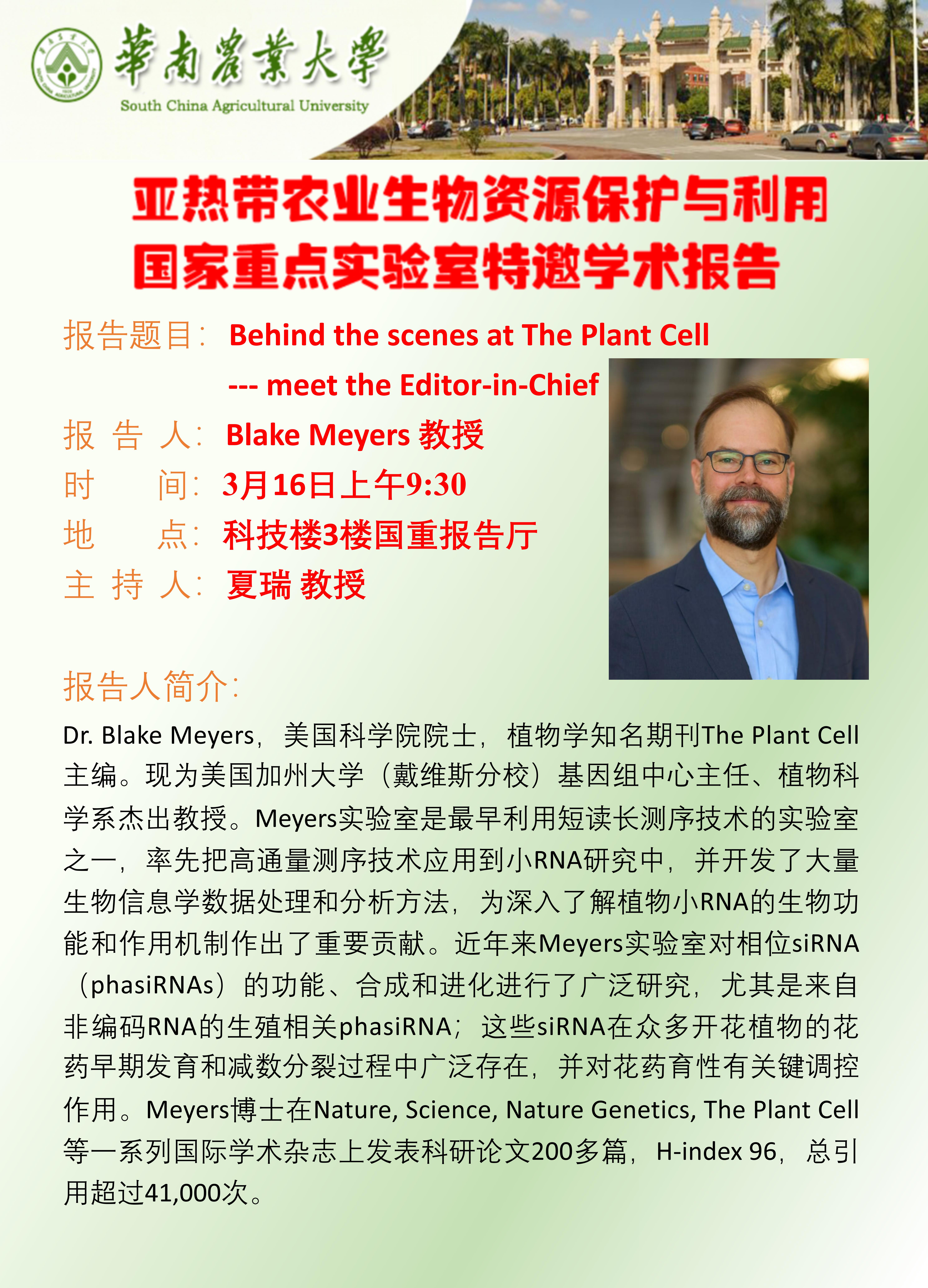特邀学术报告:Behind the scenes at The Plant Cell——meet the Editor-in-Chief