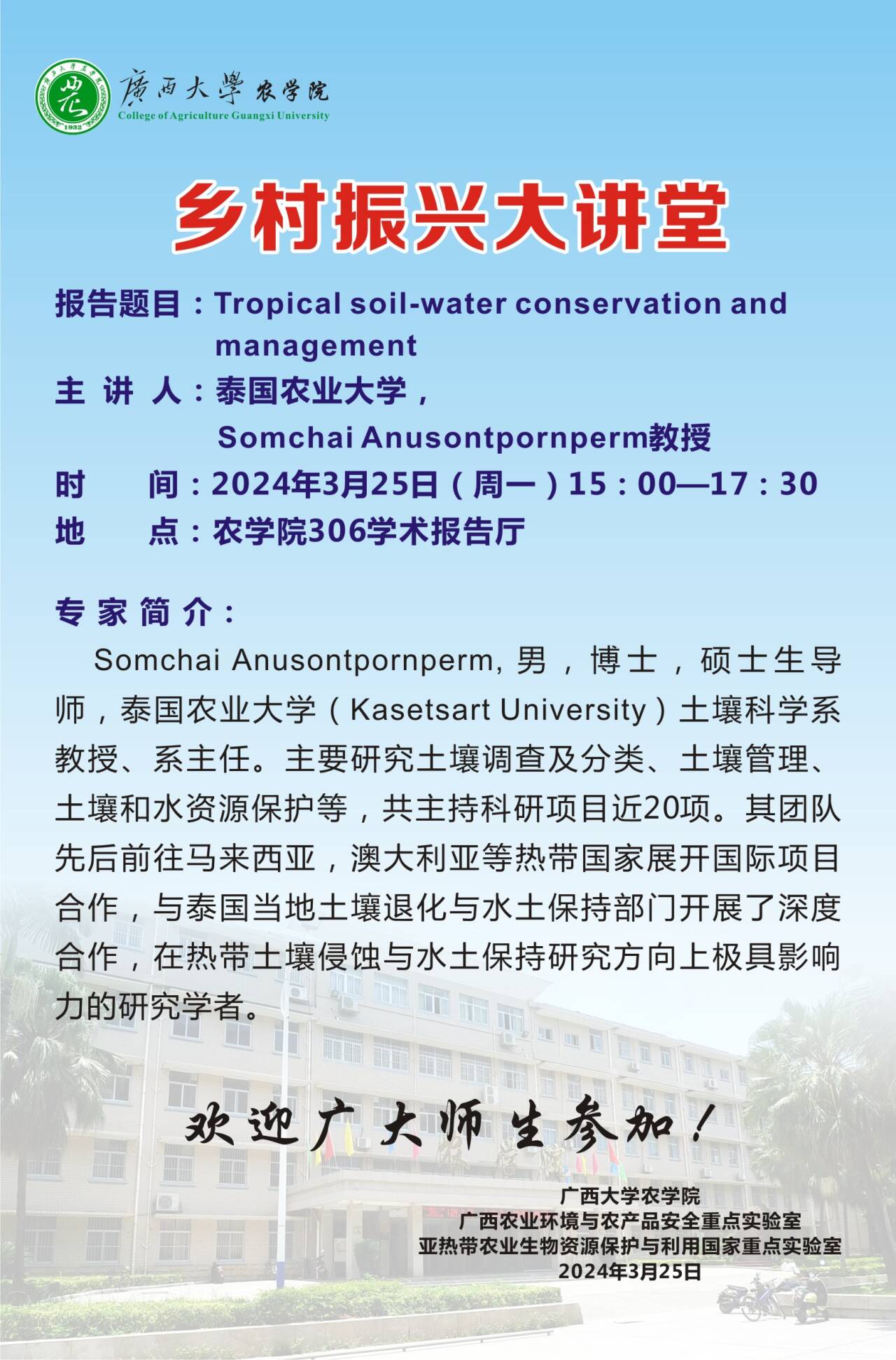 乡村振兴大讲堂:Tropical soil-water conservation and management
