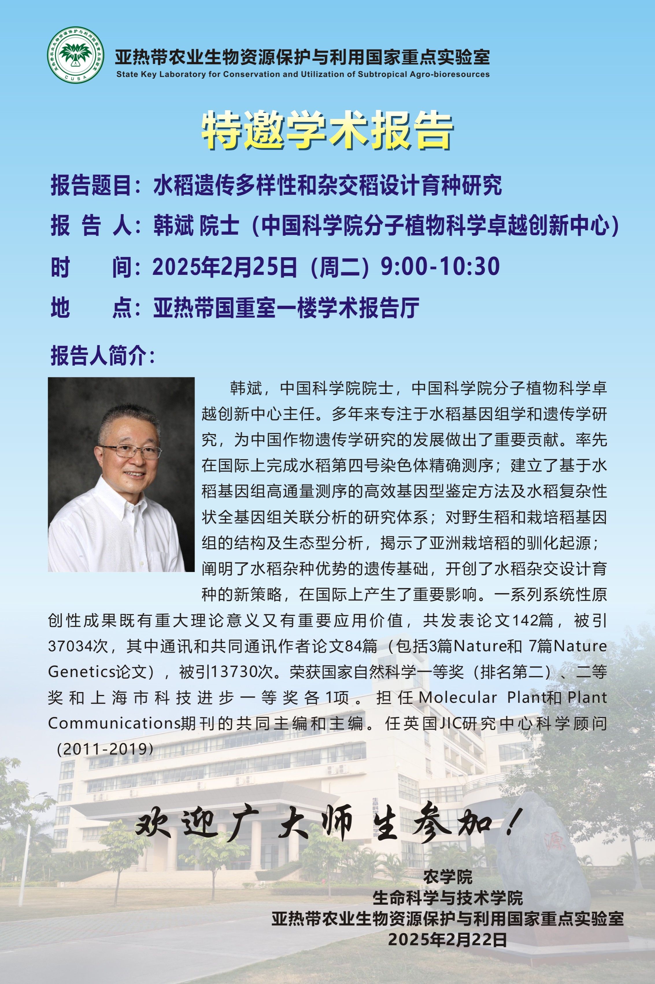 特邀学术报告:水稻遗传多样性和杂交稻设计育种研究(韩斌)