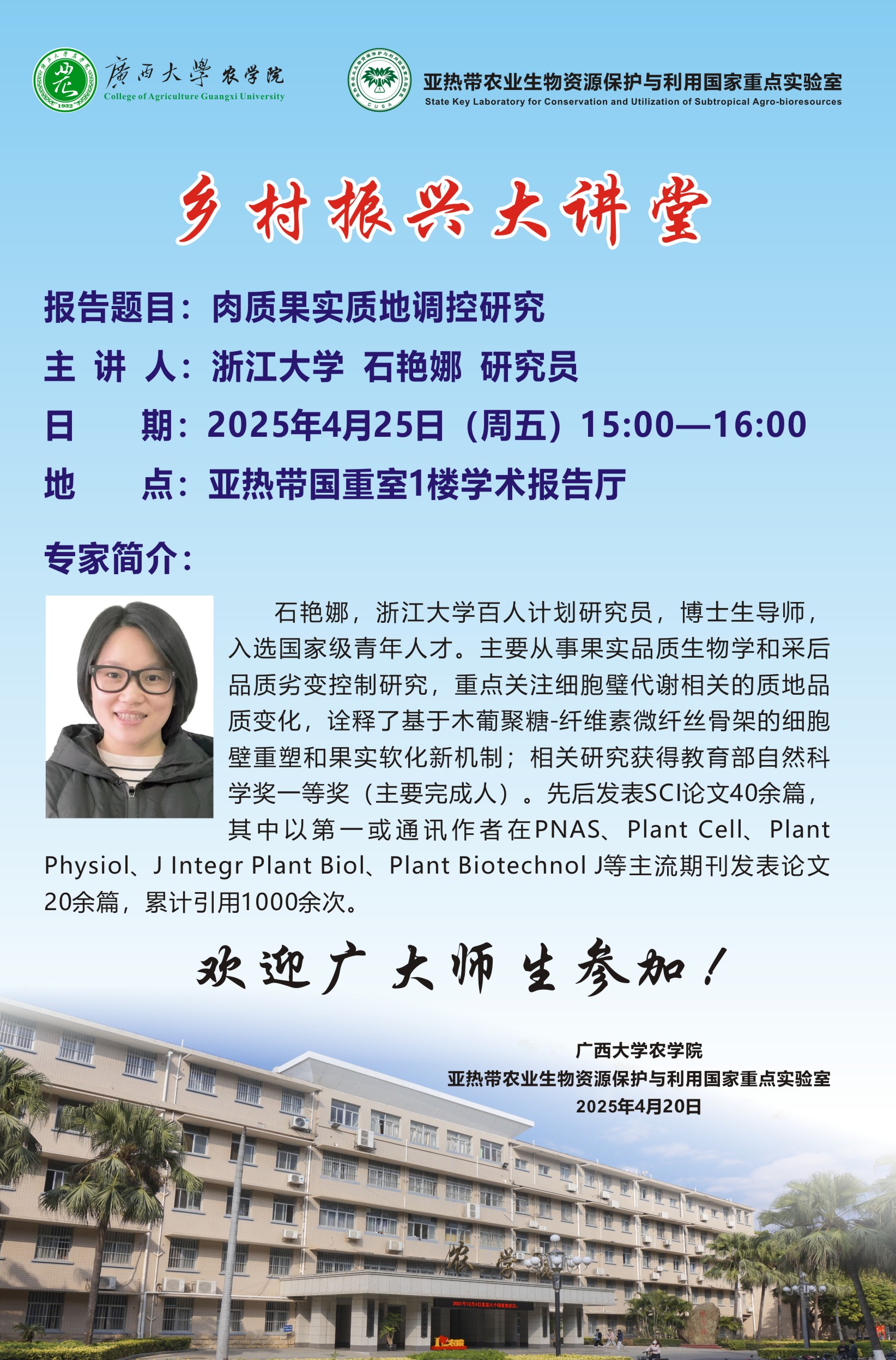乡村振兴大讲堂:肉质果实质地调控研究(石艳娜)
