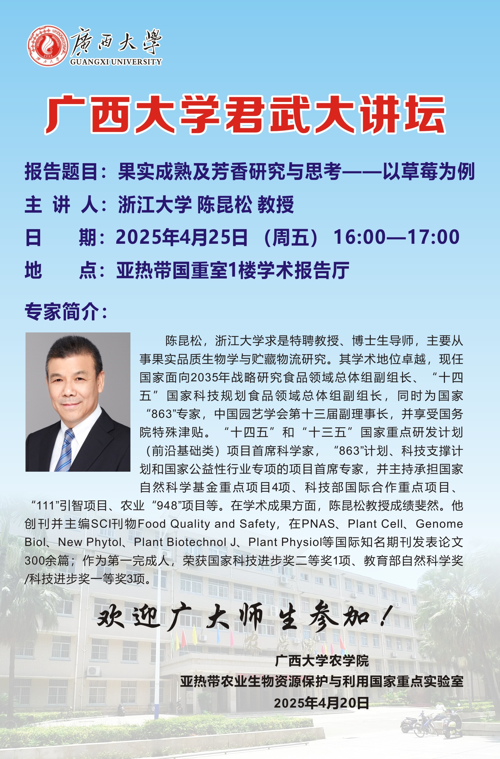 英国上市公司365君武大讲坛:果实成熟及芳香研究与思考——以草莓为例(陈昆松)