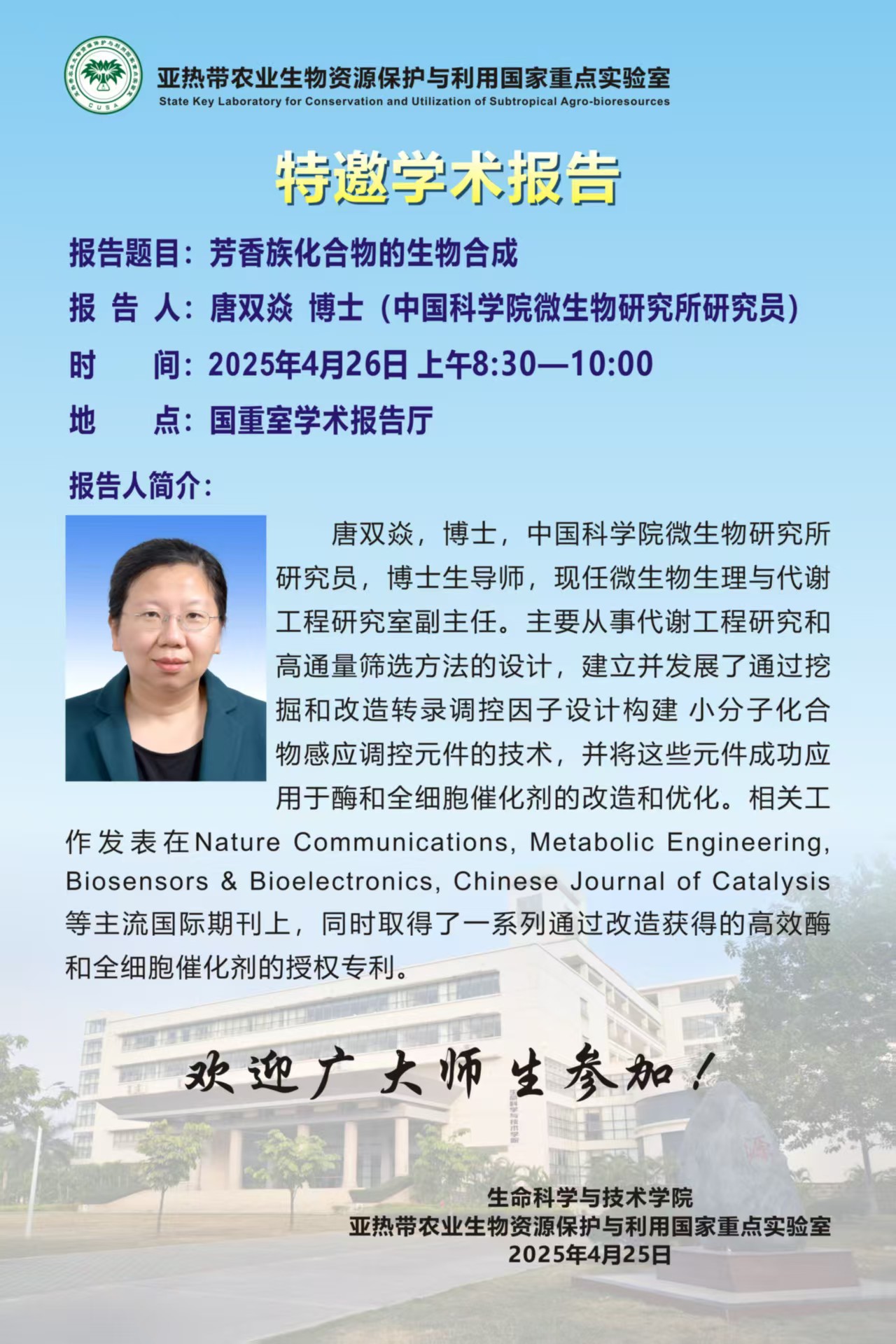 特邀学术报告:芳香族化合物的生物合成(唐双焱)