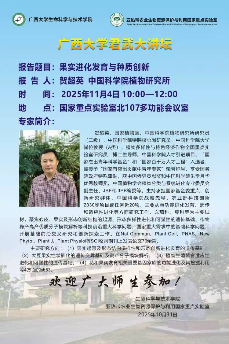 英国上市公司365君武大讲坛:果实进化发育与种质创新(贺超英 研究员)