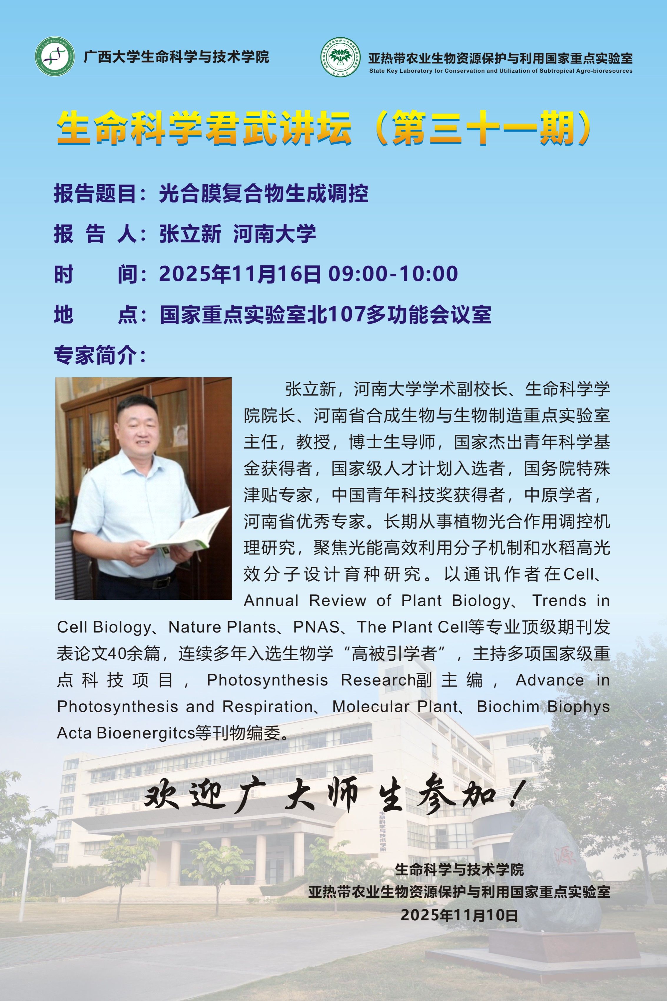 生命科学君武讲坛(第三十一期):光合膜复合物生成调控