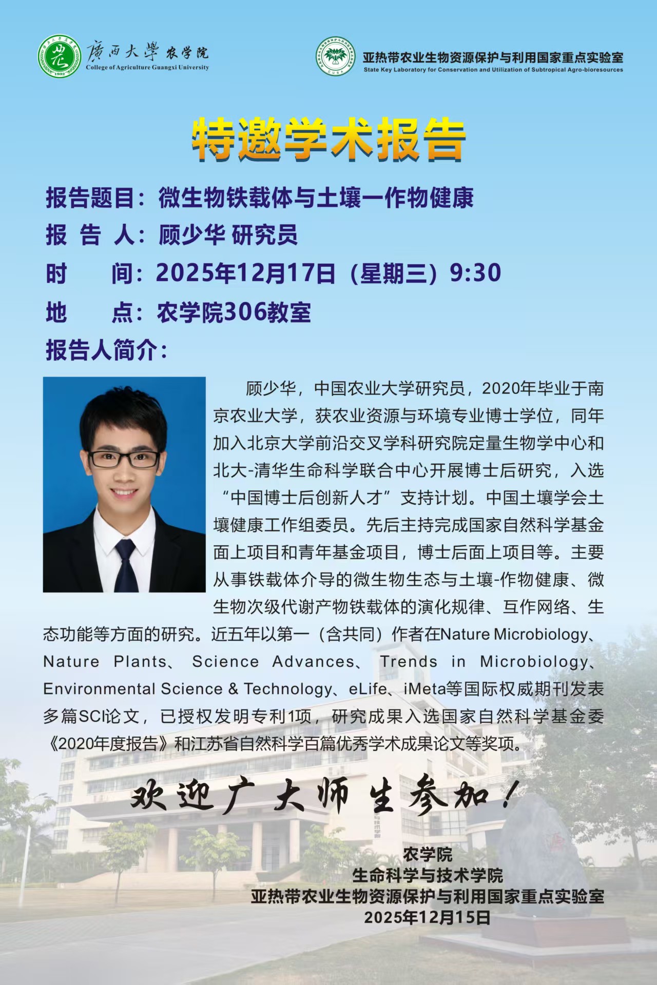 特邀学术报告:微生物铁载体与土壤-作物健康(顾少华 研究员)