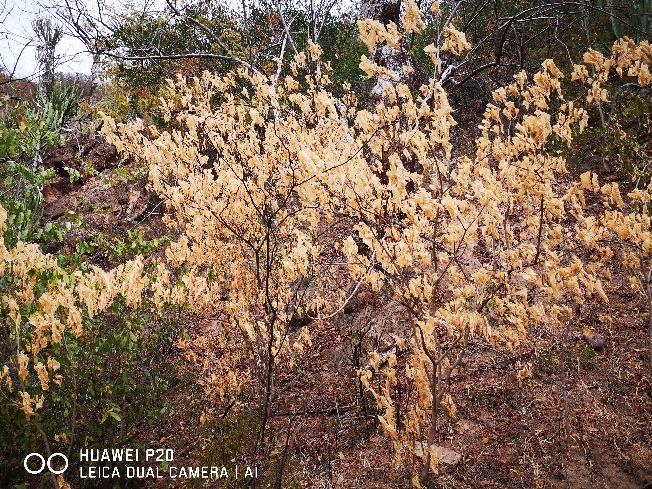 我国西南地区由于高山引起的雨影效应和冬半年干暖的环流西风南支槽的影响,河谷地区气候干热,发育特有的“河谷型萨王纳植被”,主要分布在怒江、澜沧江、元江和金沙江的部分河谷地段,植物具有典型旱生特征。在干热河谷共存着不同的生活型和落叶习性的木本植物,为研究不同类群植物对于干旱的响应提供了良好的场所。在2015年包括我国在内的整个东南亚经历了一次强的厄尔尼诺带来的极端干旱事件,本次干旱过程中,干热河谷许多植物末梢枯死和地上部分死亡。利用这次极端干旱事件,中科院西双版纳热带植物园,英国上市公司365“亚热带农业生物资源保护与利用国家重点实验室”等机构科研人员选择了元江干热河谷40种常见的木本植物,前后三年持续监测了干旱不同阶段植物的生理功能变化、旱灾后个体的末梢枯死和地上部分死亡情况,同时,系统研究了这些植物枝条和叶片的水力性状,重点探讨了不同类群干热河谷植物的水力性状差别以及与植物在极端干旱时期植物的响应表现。结果表明,元江干热河谷植物在叶片和枝条水平均表现出很强的耐旱能力,但种间差异极大,植物叶片的落叶习性(常绿,旱季前期落叶和半落叶)而非生活型(藤本、乔木、灌木)主要驱动植物枝条和叶片水力特征的适应,相同落叶习性的不同生物型的植物多表现出驱同的适应特征。半落叶植物、灌木种类相比其他类群具有更高的枝条枯死和地上部死亡率。研究指出水力性状可以较好地预测植物在极端干旱中的表现,预测要考虑落叶习性和生活型的影响。