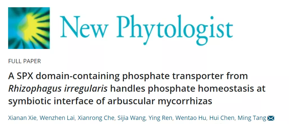 Xie X, Lai W, Che X, Wang S, Ren Y, Hu W, Chen H, and Tang M. 2022. A SPX domain-containing phosphate transporter from Rhizophagus irregularis handles phosphate homeostasis at symbiotic interface of arbuscular mycorrhizas. New Phytologist doi:10.1111/nph.17973.