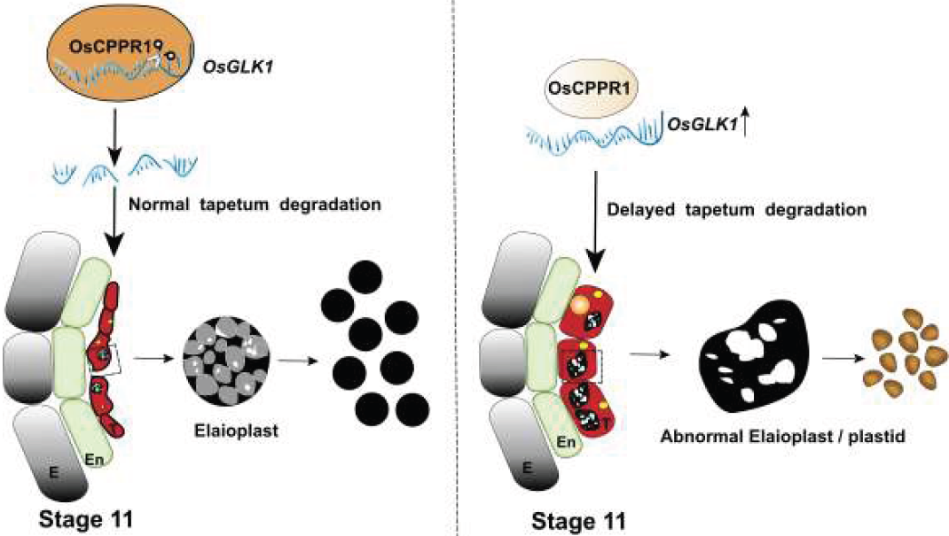 OsCPPR1-OsGLK1调控水稻花药绒毡层质体发育的作用模型