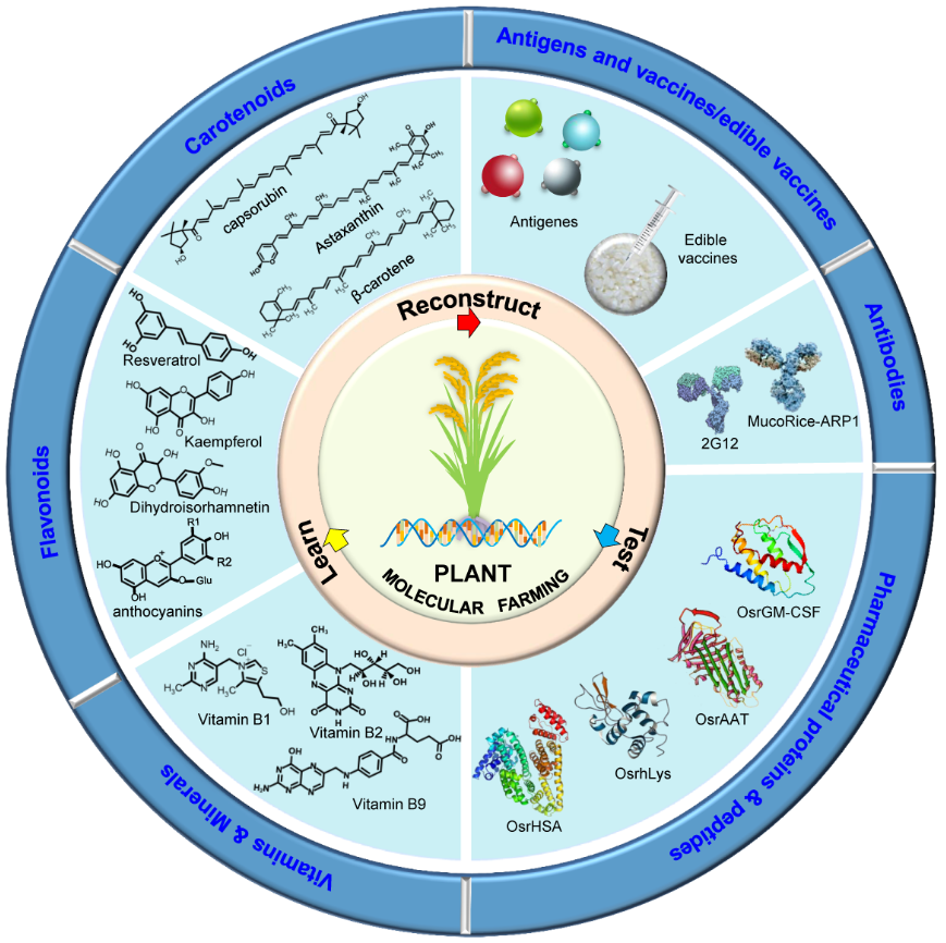 2022年2月24日,加拿大卫生部批准了世界首个植物源性的新冠病毒疫苗COVIFENZ®,显示出利用植物生产重要医用与生物活性产物的分子农场(Molecular Farming)的重要性。近日,华南农业大学生命科学学院、亚热带农业生物资源保护与利用国家重点实验室和岭南现代农业科学与技术广东省实验室祝钦泷研究员与刘耀光院士在国际著名学术期刊Trends in Biotechnology在线发表了题为“Molecular farming using transgenic rice endosperm”的综述文章,系统总结了水稻胚乳作为生物反应器的优缺点、拓展了分子农场的概念,并对如何提高目标产物含量及其面临的挑战进行了讨论,展望了利用水稻胚乳为代表的植物分子农场的未来发展方向。