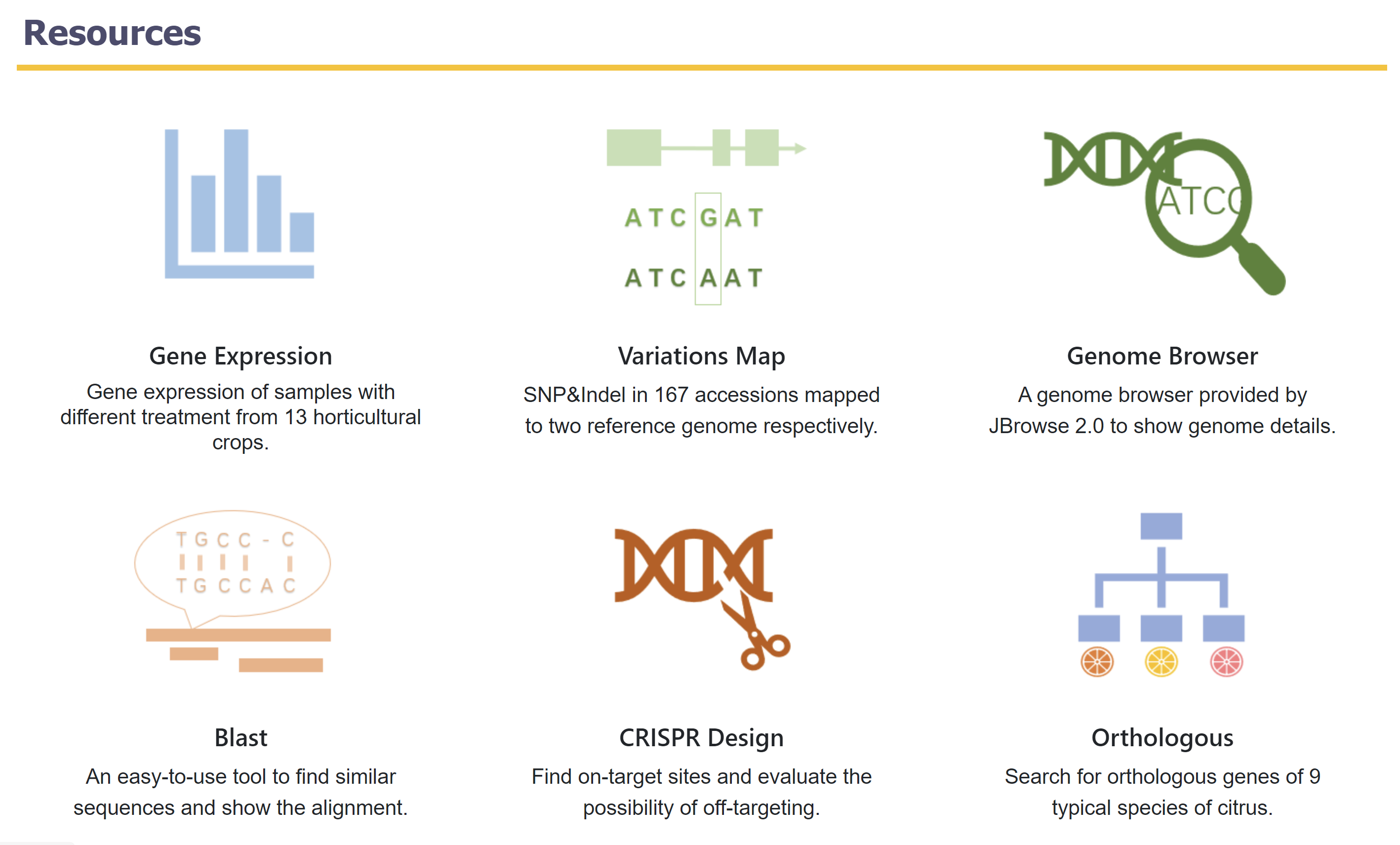 该研究构建的柑橘泛基因组辅助育种数据库CPBD (http://citrus.hzau.edu.cn/)涵盖17个柑橘物种的23个基因组、13种园艺作物的4038套转录组、167种柑橘资源材料的变异组数据以及44个柑橘样本不同组织和发育时期的DNA甲基化组数据,为目前已发表的最新和最为完整的柑橘基因组、表观组和园艺作物转录组数据集。同时提供23个基因组的同源基因查询、共线性区块分析和基因功能/通路注释等信息。