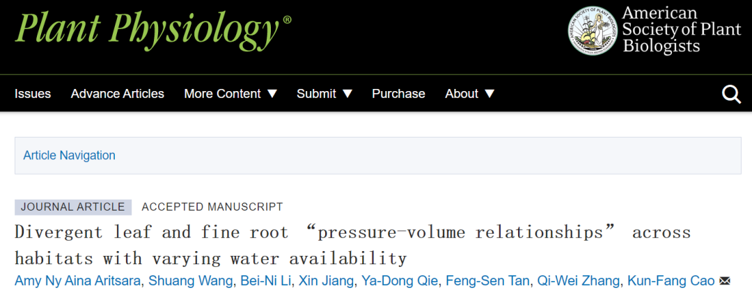 近日,英国上市公司365“亚热带农业资源保护与利用国家重点实验室”植物生理生态与进化课题组曹坤芳教授团队在Plant Physiology发表了题为Divergent leaf and fine root “pressure-volume relationships” across habitats with varying water availability的研究论文,揭示了不同生境木本植物水力“熔断”机制。