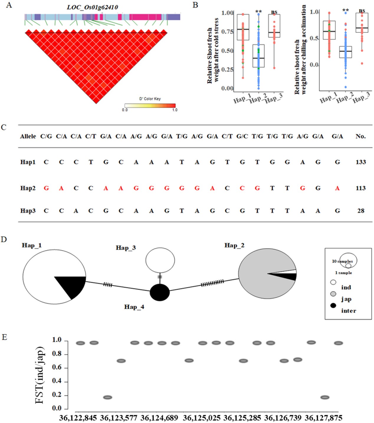 图2 进一步对候选基因进行连锁不平衡分析、单倍型分析及单倍型网络分析。
