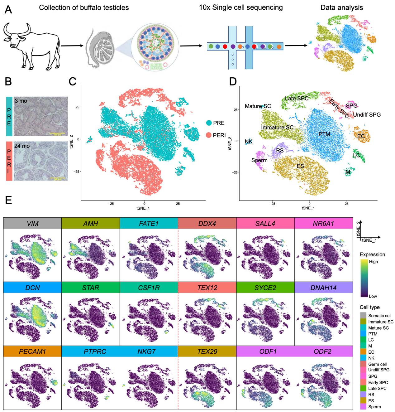 图2 青春期前和青春期水牛睾丸的单细胞转录组分析