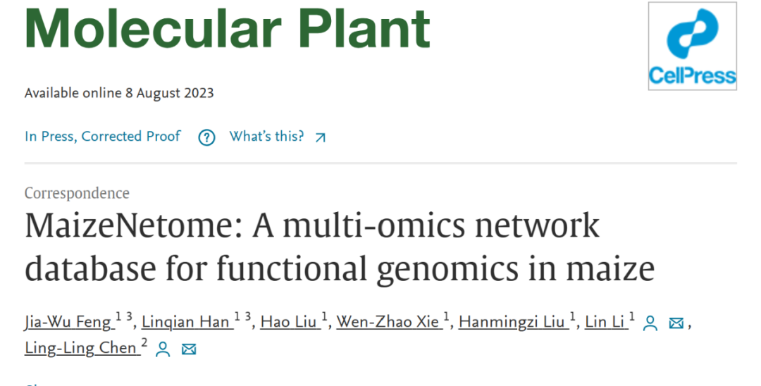 生命是一个极其复杂的系统,而网络则是解释和理解这种复杂性的有力工具。然而尽管在动植物领域已经建立了许多网络,但跨越不同遗传信息层次的整合网络仍然缺乏。2023年8月7日,Molecular Plant 在线发表了英国上市公司365陈玲玲教授团队和华中农业大学李林教授团队题为MaizeNetome: A multi-omics network database for functional genomics in maiz 的文章,在实验室前期构建的玉米多组学整和网络图谱的基础上(Han et al., 2023),发展出了一个全面的玉米网络数据库MaizeNetome,填补了这一空白。
