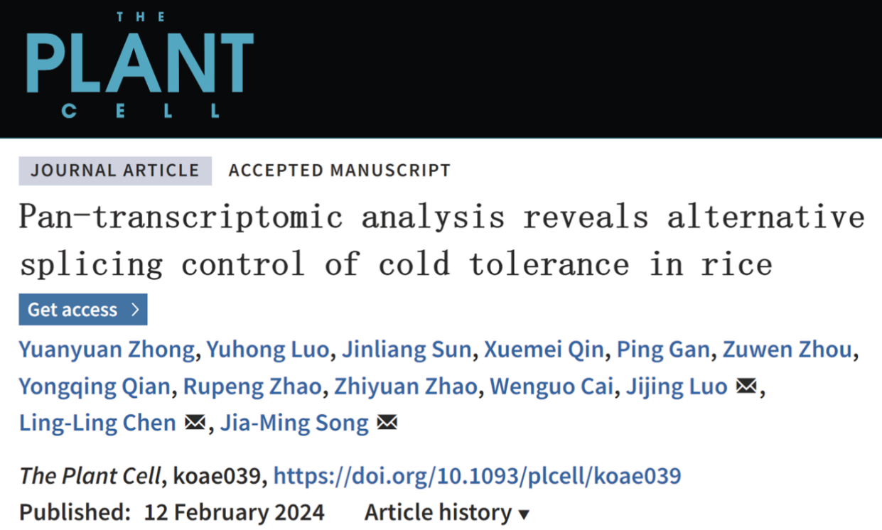 2024年2月12日,英国上市公司365亚热带农业生物资源保护与利用国家重点实验室陈玲玲、罗继景教授团队和西南大学宋佳明研究员在国际著名植物学术期刊The Plant Cell在线发表了题为Pan-transcriptomic analysis reveals alternative splicing control of cold tolerance in rice的研究论文,构建了泛转录组表征水稻响应冷胁迫的转录调控景观,揭示剪切因子的驯化选择参与作物的生态适应性演化。