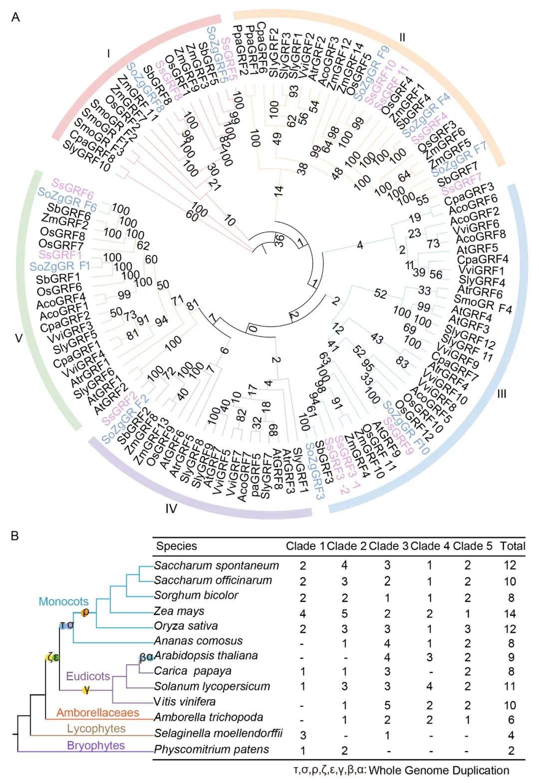 甘蔗提供了世界上80%的食糖和40%的乙醇,是最重要的糖料和能源作物之一。叶片作为植物光合作用的主要器官和株型建成的重要组成部分,其发育状况与形态结构直接影响了植物的总光合效能,进而决定了作物的产量与品质。因此,研究甘蔗叶片发育及形态建成的分子调控机制可为甘蔗理想株型的分子设计育种提供重要的理论依据和基因资源。植物生长调节因子(growth regulation factor, GRF)是一类植物特有的转录因子,目前已被证明其广泛参与了叶片发育和形态建成的调节过程,在植物生长发育过程中扮演着重要角色。但由于甘蔗复杂的遗传背景,目前关于GRF参与调控甘蔗叶片形成的分子机制鲜有报道。