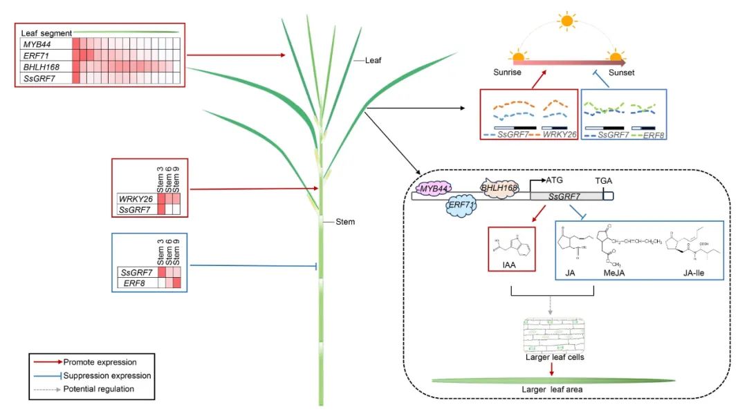 图2 SsGRF7介导的甘蔗叶片扩张模式图