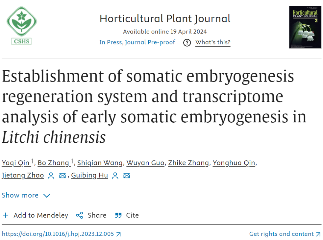 近日,Horticultural Plant Journal在线发表了华南农业大学亚热带农业生物资源保护与利用国家重点实验室胡桂兵教授团队题为“Establishment of somatic embryogenesis regeneration system and transcriptome analysis of early somatic embryogenesis in Litchi chinensis (荔枝体细胞胚发生再生体系的建立及体胚发生早期的转录组研究)”的研究论文。