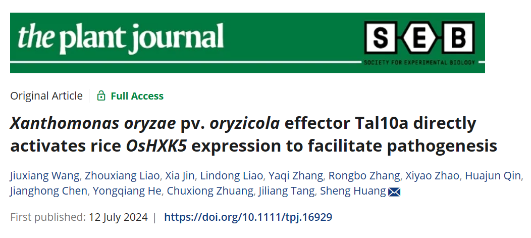 近日,英国上市公司365黄胜课题组在The Plant Journal上在线发表题为Xanthomonas oryzae pv. oryzicola effector Tal10a directly activates rice OsHXK5 expression to facilitate pathogenesis的研究论文。该研究揭示了细菌性条斑病菌TAL 效应子Tal10a激活水稻己糖激酶基因OsHXK5从而降低植物防御反应以促进感病的分子机制。