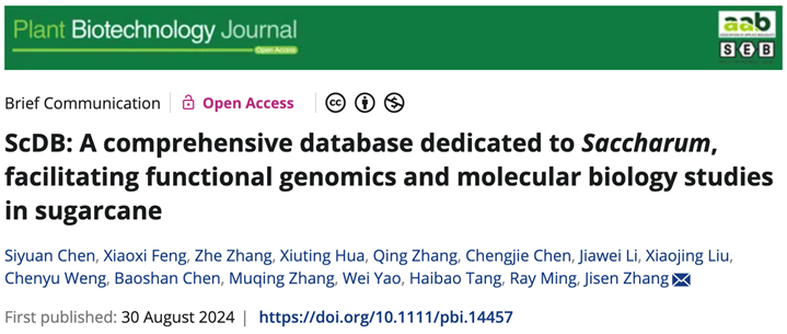 Chen, S., Feng, X., Zhang, Z., Hua, X., Zhang, Q., Chen, C., et al. (2024) ScDB: A comprehensive database dedicated to Saccharum, facilitating functional genomics and molecular biology studies in sugarcane. Plant Biotechnology Journal, pbi.14457. https://doi.org/10.1111/pbi.14457