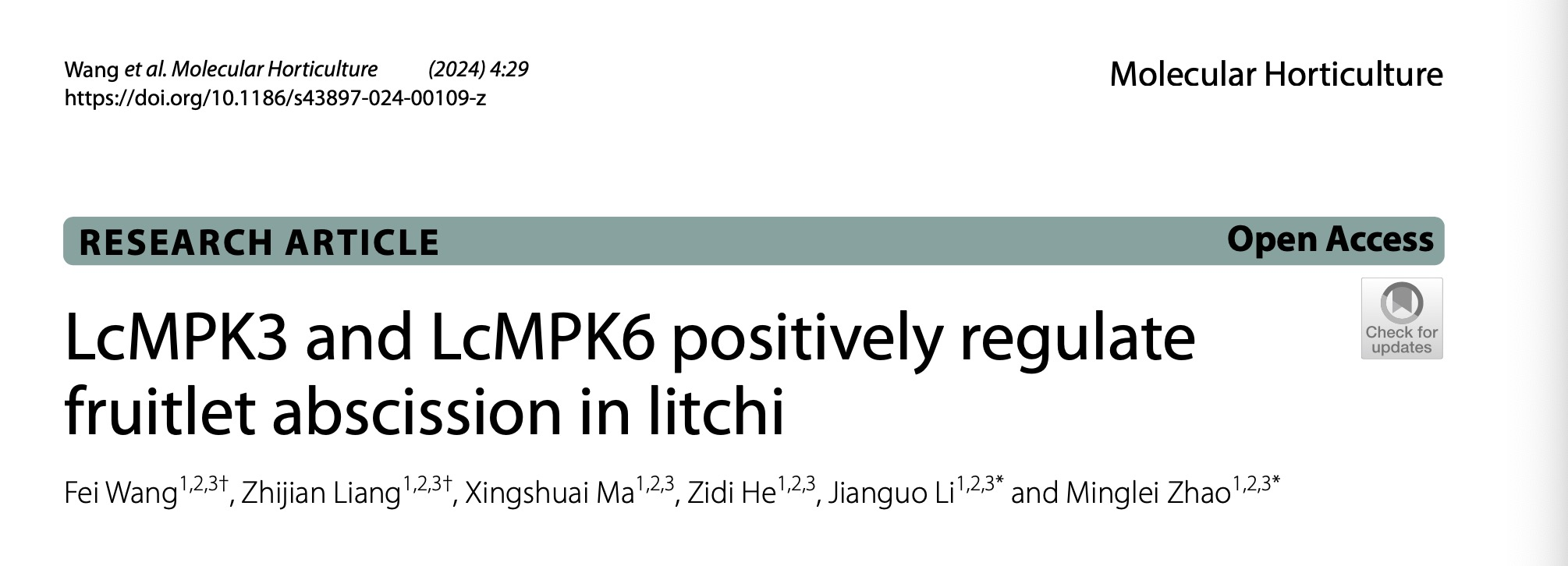 李建国团队一直致力于荔枝果实发育调控机制的研究,近年来在Journal of Integrative Plant Biology (Ma et al., 2024)、Molecular Horticulture (Xie et al., 2024; Wang et al., 2024),The Plant Journal (Ma et al., 2020; 2023),Journal of Experimental Botany (Xie et al., 2023; Zhao et al., 2020; Li et al., 2019)、International Journal of Biological Macromolecules (He et al., 2023)、Horticulture Research (Ma et al., 2021)等权威期刊发表相关论文,在荔枝果实发育调控的研究中取得许多重要进展。