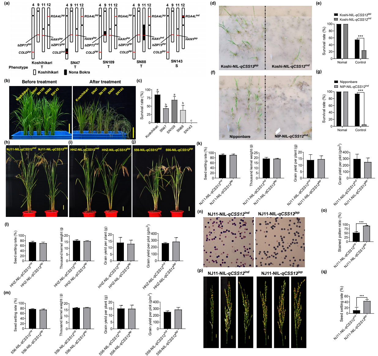 Fig. 3 RGA4L confers strong chilling tolerance without yield penalty in rice.