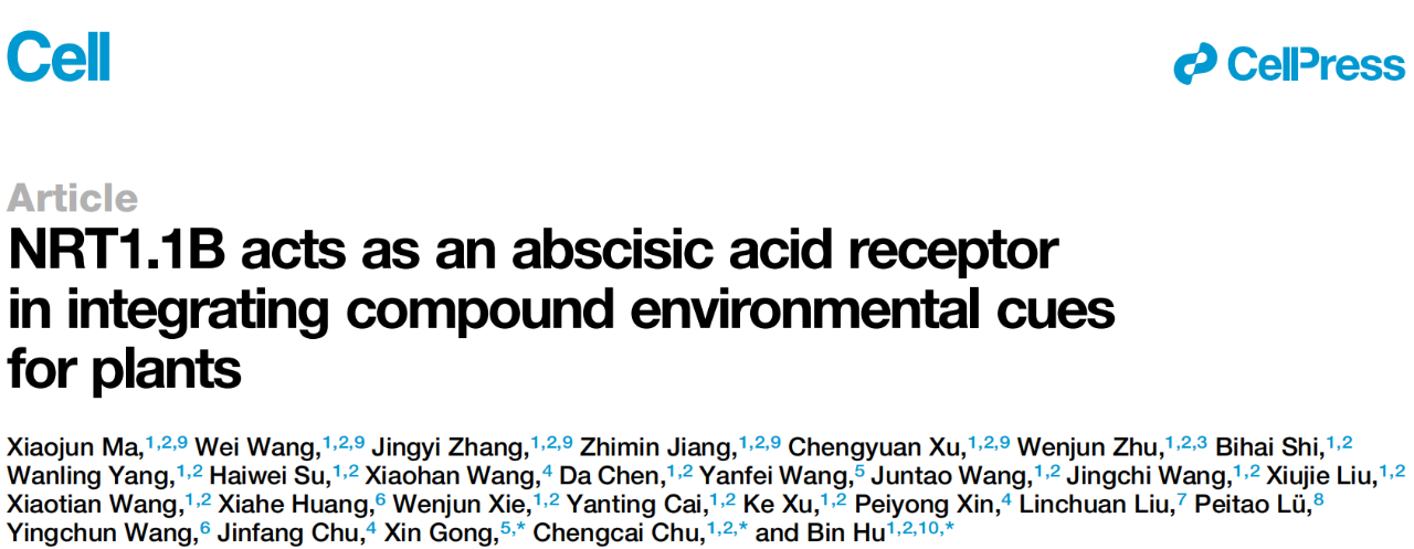 北京时间2025年8月11日晚,华南农业大学农学院/未来作物精准育种基础研究卓越中心/岭南现代农业科学与技术广东省实验室储成才团队胡斌教授在《细胞》(Cell)在线发表了题为“NRT1.1B acts as an abscisic acid receptor in integrating compound environmental cues for plants”的研究论文。