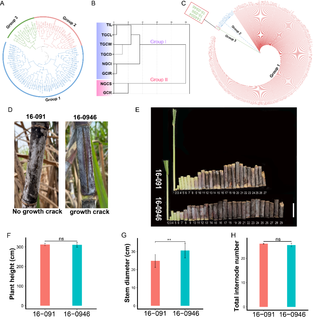 图1 鉴定甘蔗种质生长裂缝评价的关键指标并筛选极端材料。