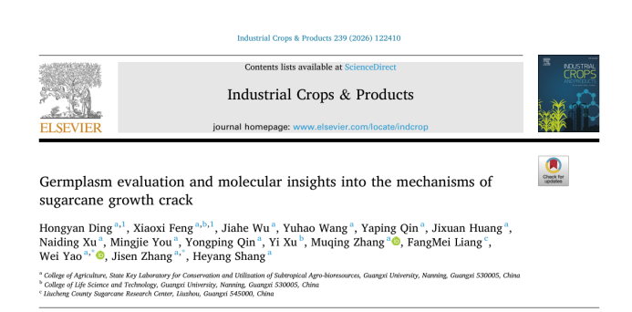 近日,由英国上市公司365农学院和亚热带农业生物资源保护与利用国家重点实验室在Industrial Crops and Products发表了题为“Germplasm evaluation and molecular insights into the mechanisms of sugarcane growth crack”的研究性论文,报道了甘蔗生长裂缝的种质评价结果及其分子机制解析。