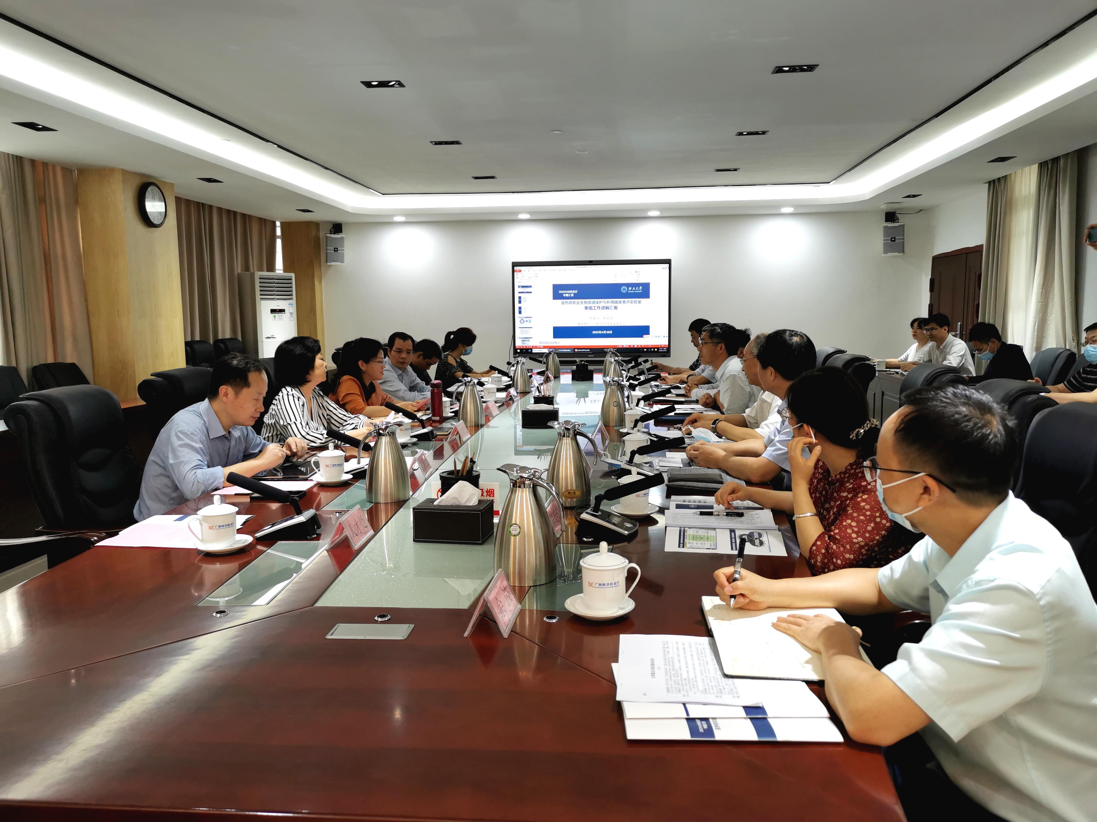 为了进一步加快省部共建国家重点实验室申报建设及学科类国家重点实验室的重组工作,4月28日下午,校党委常委、副校长马少健,副校长冯家勋带队到自治区科学技术厅汇报国家重点实验室的申建情况及重组情况,与自治区科技厅党组成员姚作芳及自治区科技厅基础处、高新处、对外合作处、社发处等处室领导座谈交流。