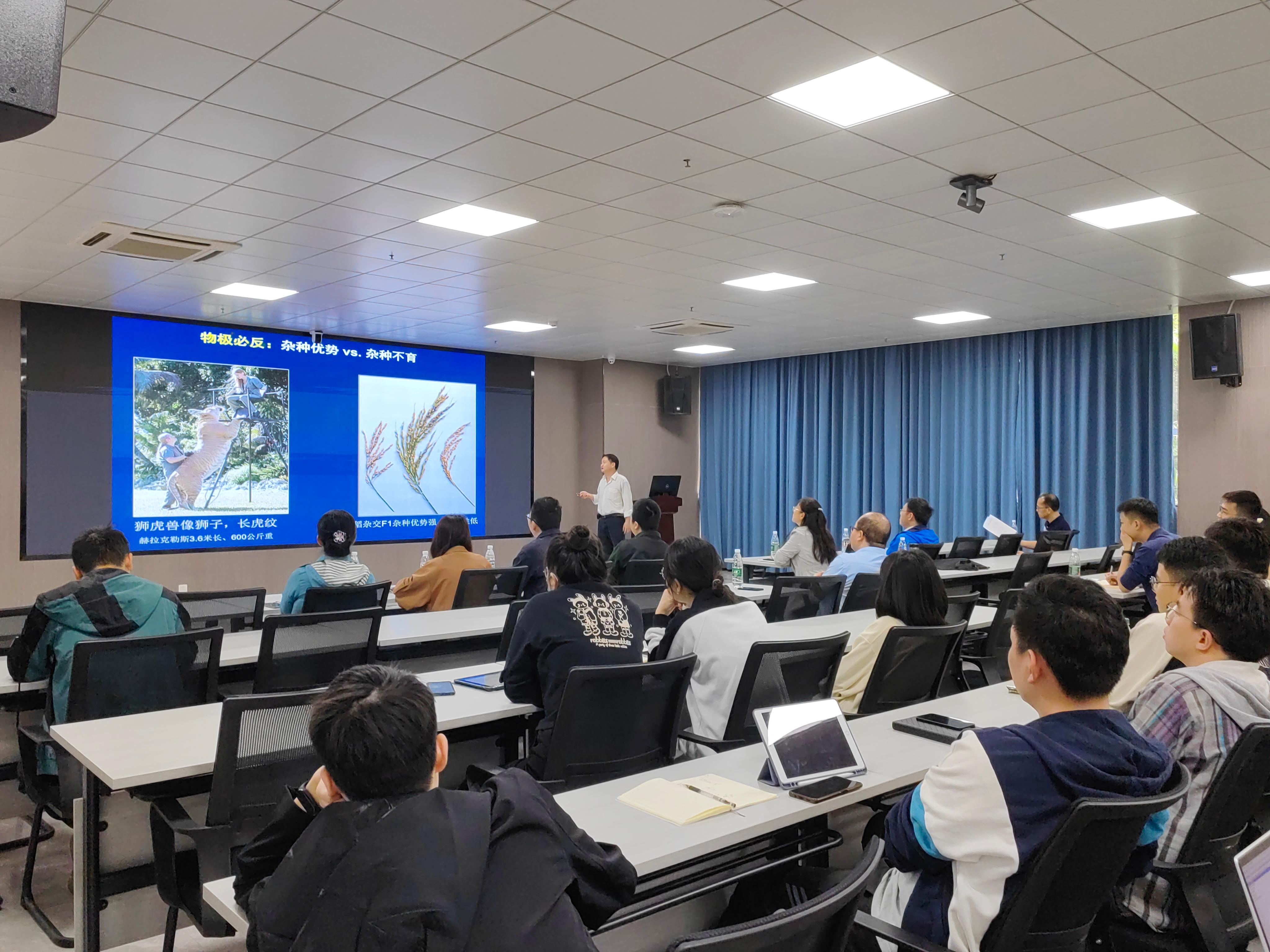 会上,陈玲玲教授介绍了实验室开展野生稻功能基因挖掘和利用的研究的设想和工作规划。她指出开发和利用好野生稻基因资源是服务种业打赢翻身仗的重要手段之一。广西具有丰富的天然野生稻资源,并拥有野生稻国家级种质资源苗圃,在广西开展野生稻研究具有天然的优势。实验室作为国家亚热带生物资源保护利用研究的重要力量,理应为广西野生稻研究做出积极贡献。她希望有水稻研究背景的PI、青年研究人员和研究生积极投身到野生稻研究上来,瞄准种业和国际前沿的重大问题开展研究,汇聚研究力量做出有代表性、有彰显度的研究成果,把野生稻研究做成实验室的特色之一。