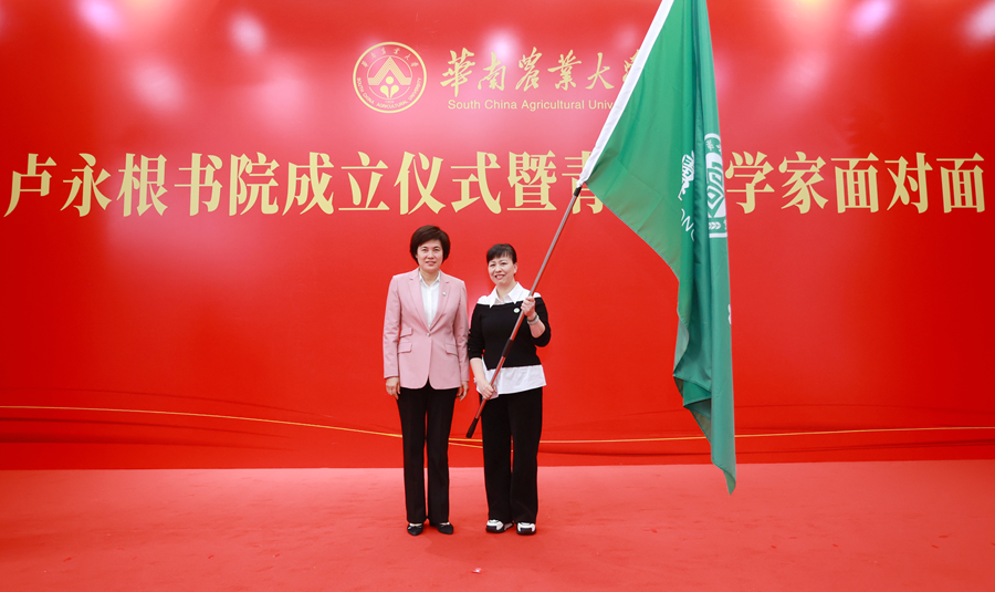 仪式上,与会领导嘉宾为卢永根书院揭牌。刘雅红为刘耀光、罗必良颁发书院特聘导师聘书,并为卢永根书院授旗。书院副院长、学工部(研工部)部长赵凤代表书院接旗。