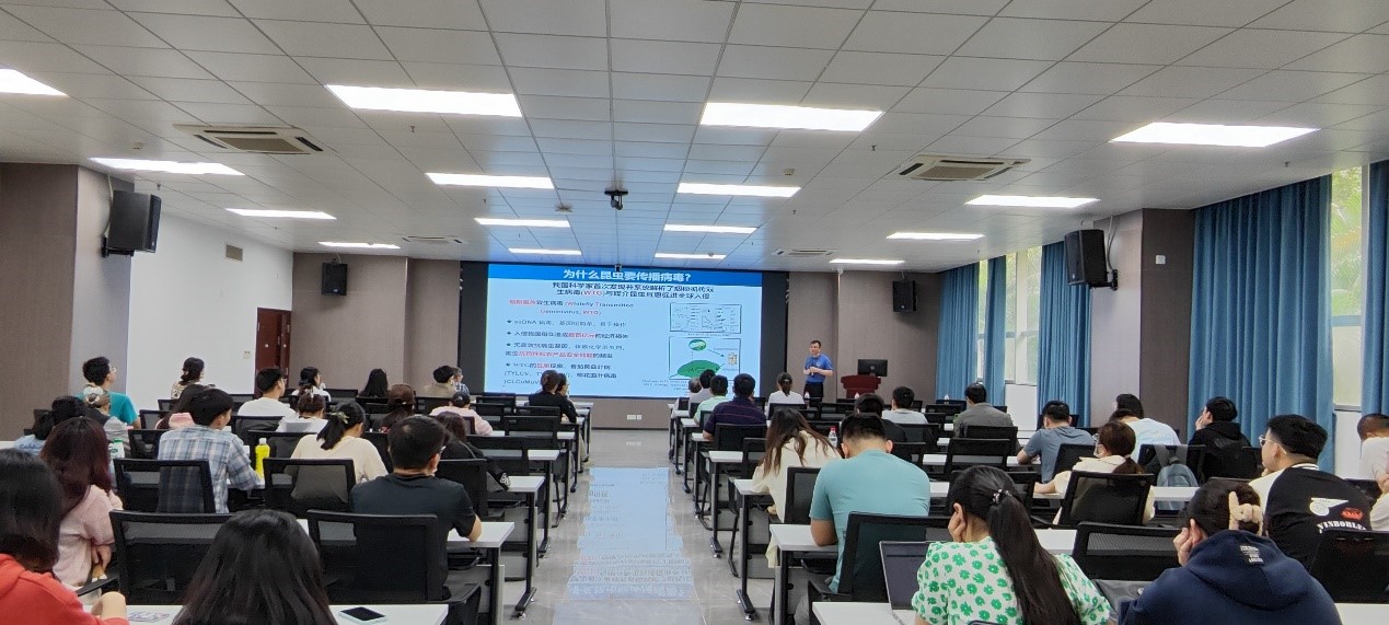 叶健研究员从虫媒病毒病高效传播导致病毒病愈演愈烈的现象和生物的物理模型模拟引入,主要从"为什么昆虫要传播病毒"和"为什么病毒需要昆虫传播"两个科学问题出发,以及“宿主抗虫媒病机制解析与应用”、“抗病蛋白的理性设计(AI 辅助与智能设计)”、“全生育期兼顾产量与多病害广谱抗性”三个重要的研究方向重点介绍虫媒病毒感染传播及其防控方面的研究。叶健研究员还就相关问题与参会师生进行了深入的互动交流。报告结束后,在国重室张积森主任的陪同下,叶健研究员参观了国家重点实验室。(初稿:高瑞婷;校稿:汪柏宇)