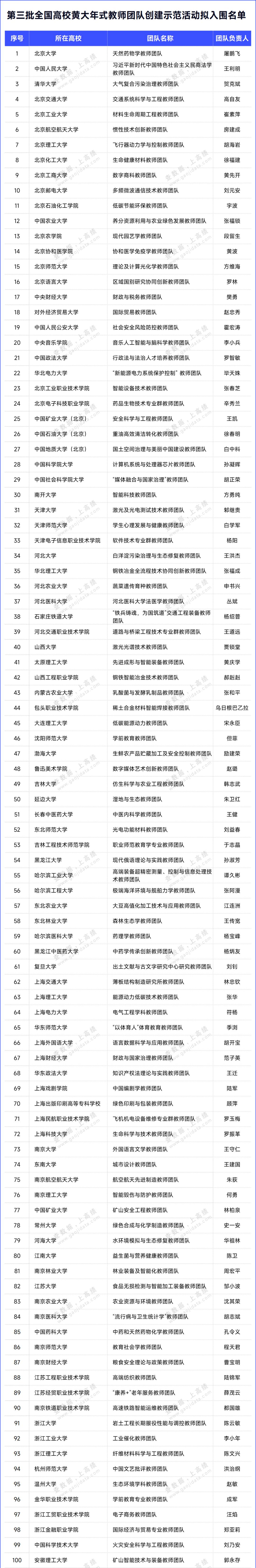 7月28日,教育部发布关于第三批全国高校黄大年式教师团队创建示范活动拟入围名单的公示,共有199所高校拟入选。