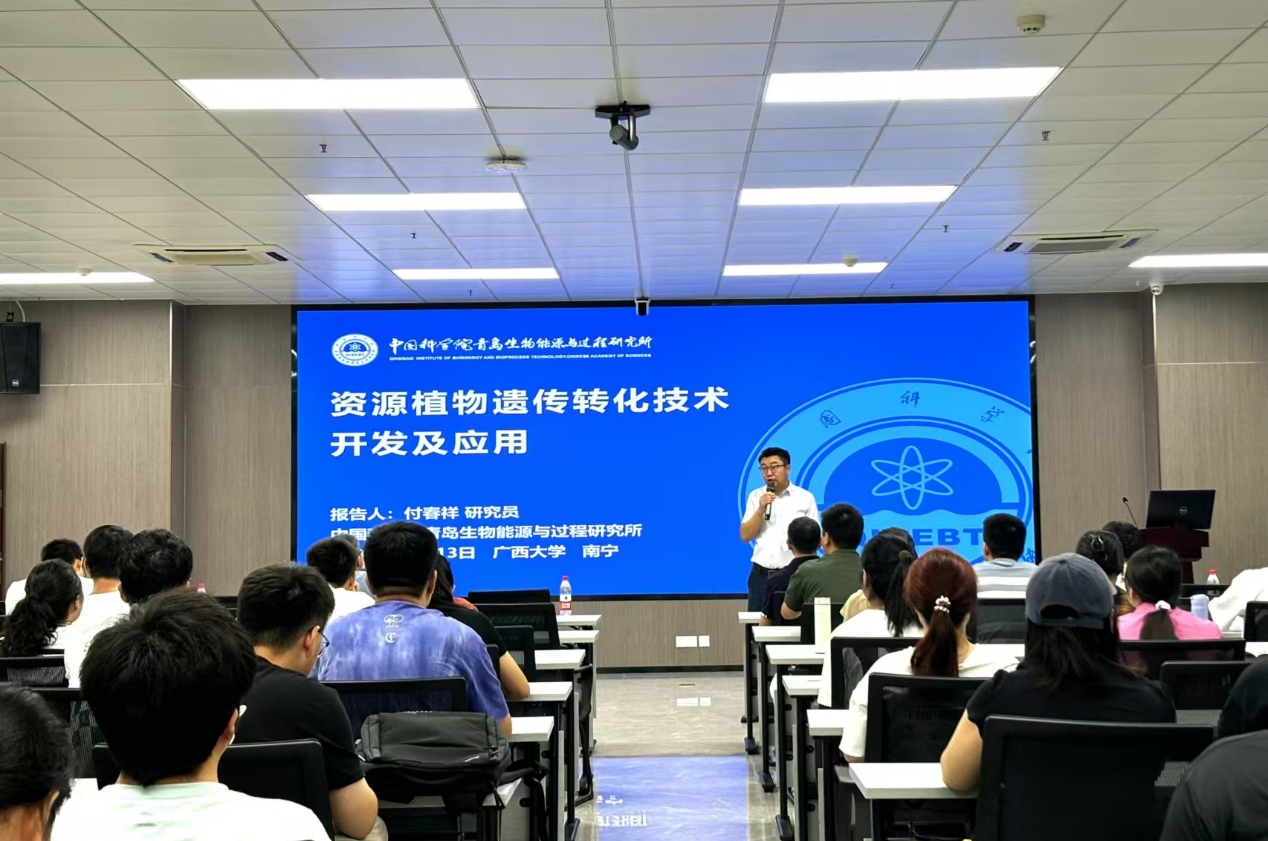 报告会上,付春祥研究员以“资源植物遗传转化技术开发及应用”为题展开报告,随后详细讲解了资源植物遗传转化技术的原理、开发过程及其在生物能源、环境保护等领域的应用。
