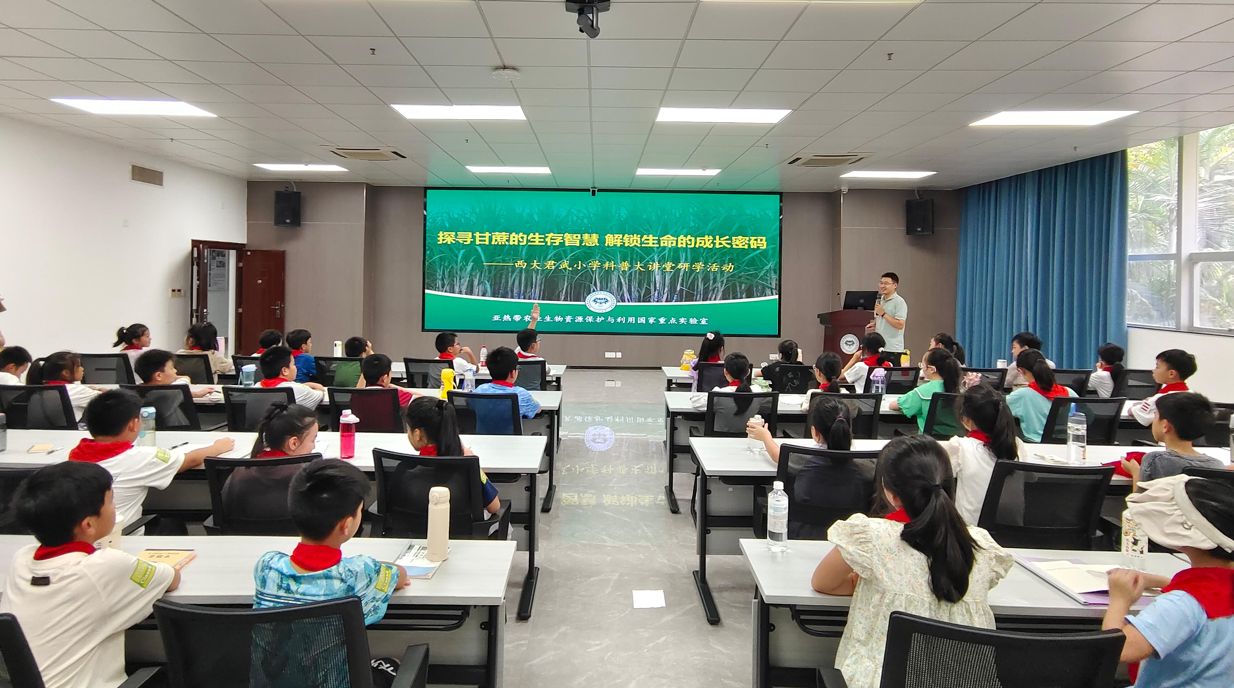 2024年是新中国成立75周年,是实现“十四五”规划目标任务的关键一年。为全面贯彻落实习近平总书记关于做好科普工作的重要论述和党的二十大关于科技创新重大决策部署,加强国家科普能力建设,深入实施全民科学素质提升行动,大力弘扬科学家精神,亚热带农业生物资源保护与利用国家重点实验室以“探寻甘蔗的生存智慧 解锁生命的成长密码”为主题,成功举办西大君武小学科普大讲堂研学活动。